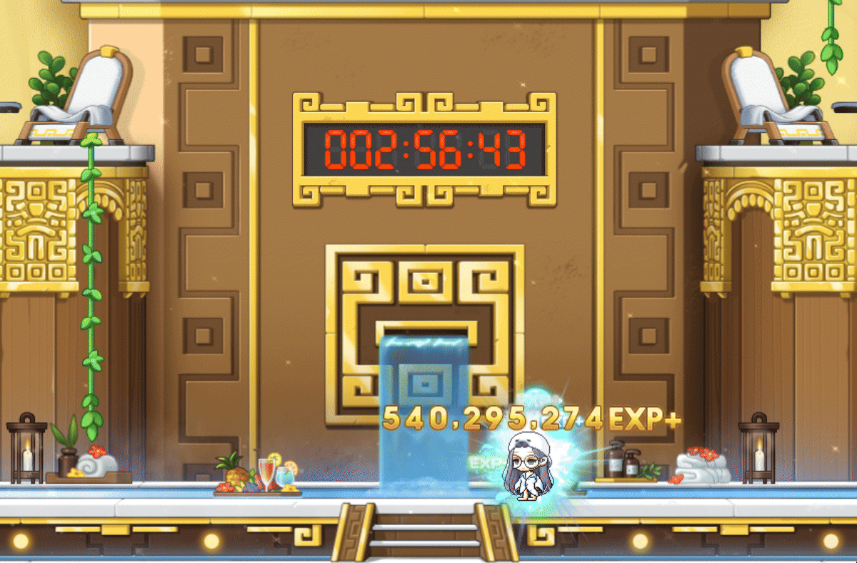 • While in the Luxe Sauna Room, receive EXP based on your level every 5 seconds.